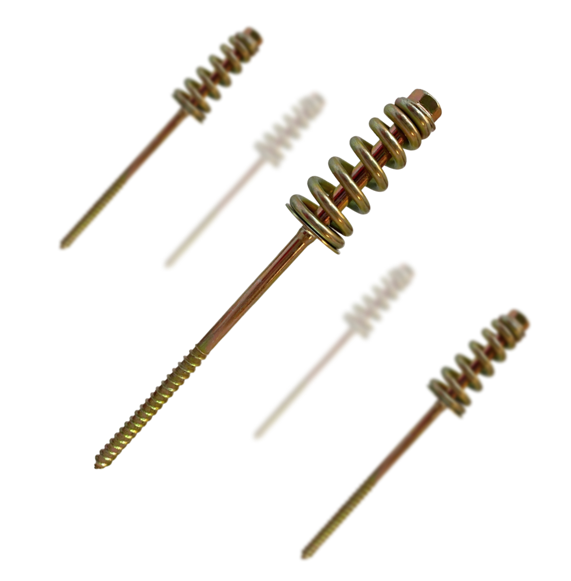 Крепежи сдавливают брусья между собой с усилием до 260 кг, и за счет пружин ликвидируют зазоры, которые образуются со временем. Что касается прижимного усилия самого шурупа, то оно достигает 1200 кг! Конические пружины не деформируются от высоких нагрузок, и могут служить десятилетиями, герметизируя стыки деревянных деталей.